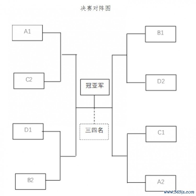 2. 参加三、四名赛事 的胜队为第三名,负队为第四名;