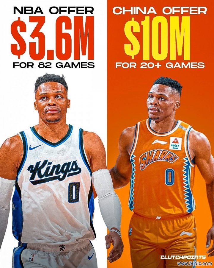 Clutch Points称,多家媒体报道过,CBA给威少开出了年薪1000万-1400万美元的待遇,为了让威少离开NBA。
