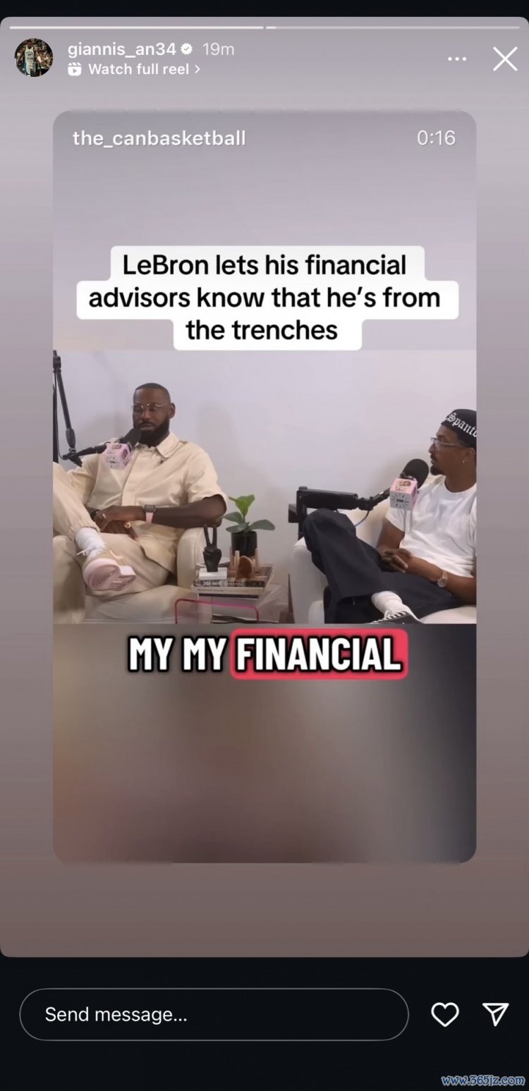 10月17日讯 今日,雄鹿前场球员扬尼斯-阿德托昆博更新了Instagram Story动态。