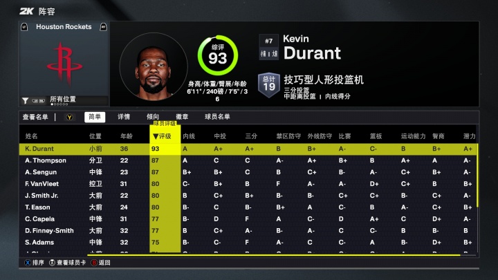 08月30日讯 火箭2K26的球员能力值提前公布: