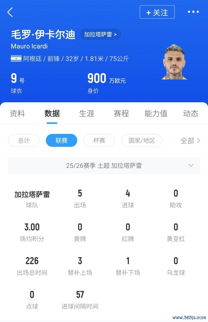 目前32岁的伊卡尔迪德转身价900万欧,他巅峰身价曾在效力国米期间达到1亿欧。