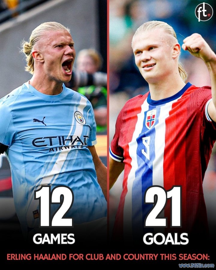 10月12日讯 本轮世预赛挪威5-0横扫以色列,哈兰德上演帽子戏法,将个人本赛季的进球数提高到21粒。