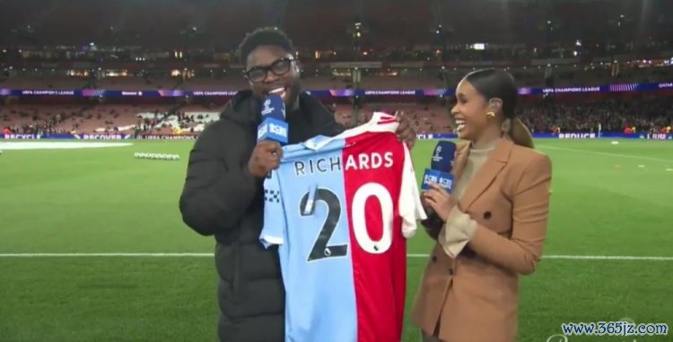 37岁的理查兹受邀现场评论阿森纳vs马竞的欧冠比赛,当他站在镜头前时,转播员送给他一份特别的礼物。