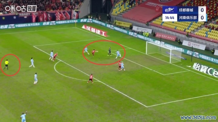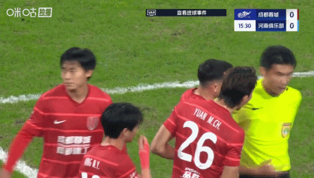其实在河南队周缘德手球后、蓉城胡荷韬射门瞬间,