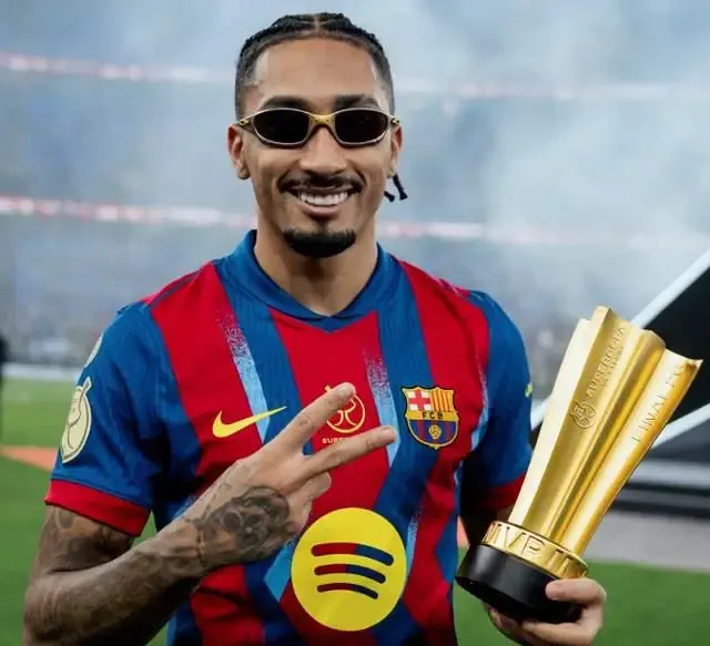 拉菲尼亚的蜕变在关键战役中体现得淋漓尽致。2024-25赛季欧冠小组赛对阵本菲卡,他在补时阶段打入制胜球;本次超级杯,他更是用两粒金子般的进球直接决定冠军归属。