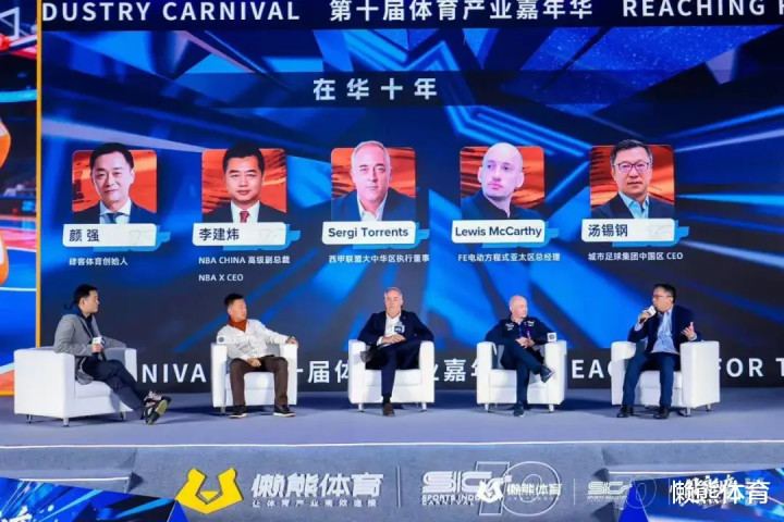 我们在峰会中邀请到5位嘉宾,围绕着《在华十年》的话题展开对话。他们分别是NBA中国高级副总裁,NBA X CEO李建炜,西甲联盟大中华区执行董事Sergi Torrents、FE电动方程式亚太区总经理Lewis McCarthy、城市足球集团中国区CEO汤锡刚,以及主持人肆客体育创始人颜强。