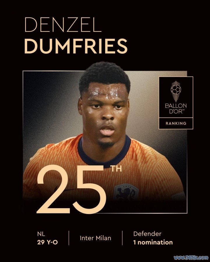 25、邓弗里斯(国米/荷兰、29岁、第一次获得提名)