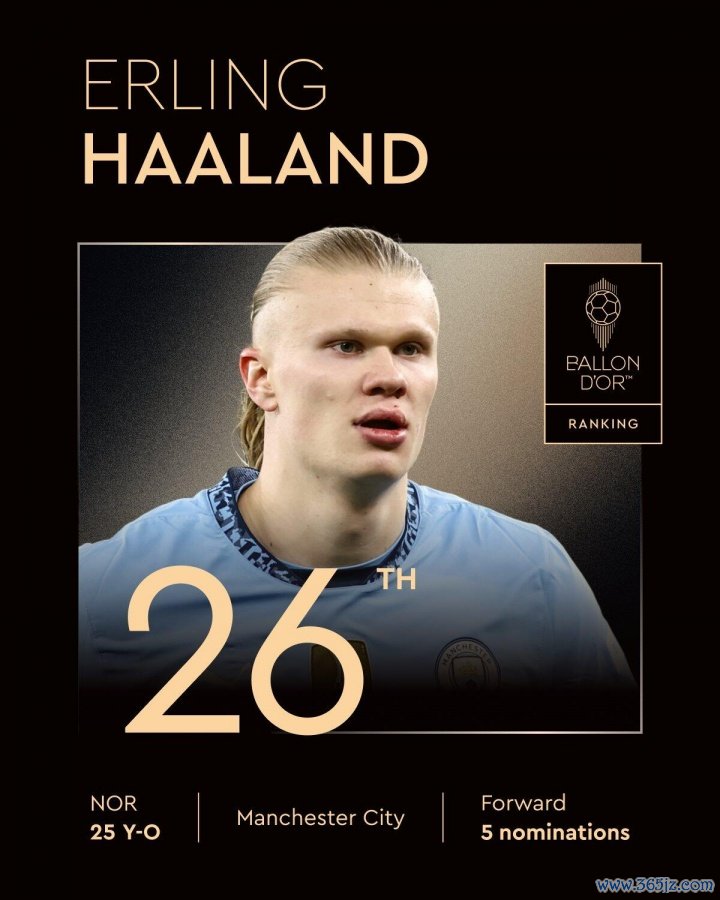 26、哈兰德(曼城/挪威、25岁、第五次获得提名)