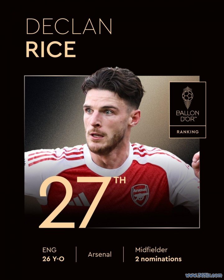 27、赖斯(阿森纳/英格兰、26岁、第二次获得提名)