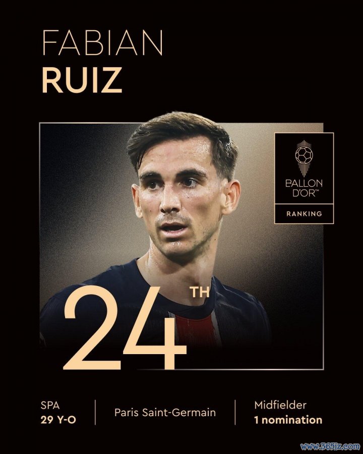 24、法比安-鲁伊斯(巴黎圣日耳曼/西班牙、29岁、第一次获得提名)