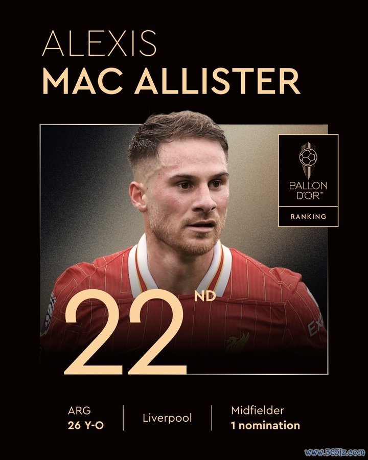22、麦卡利斯特(利物浦/阿根廷、26岁、第一次获得提名)