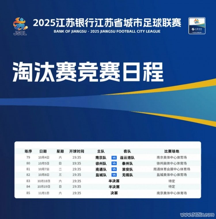 苏超出回合赛日程:10月4-8日1/4总决赛 11月1日南京奥体中心举行总决赛