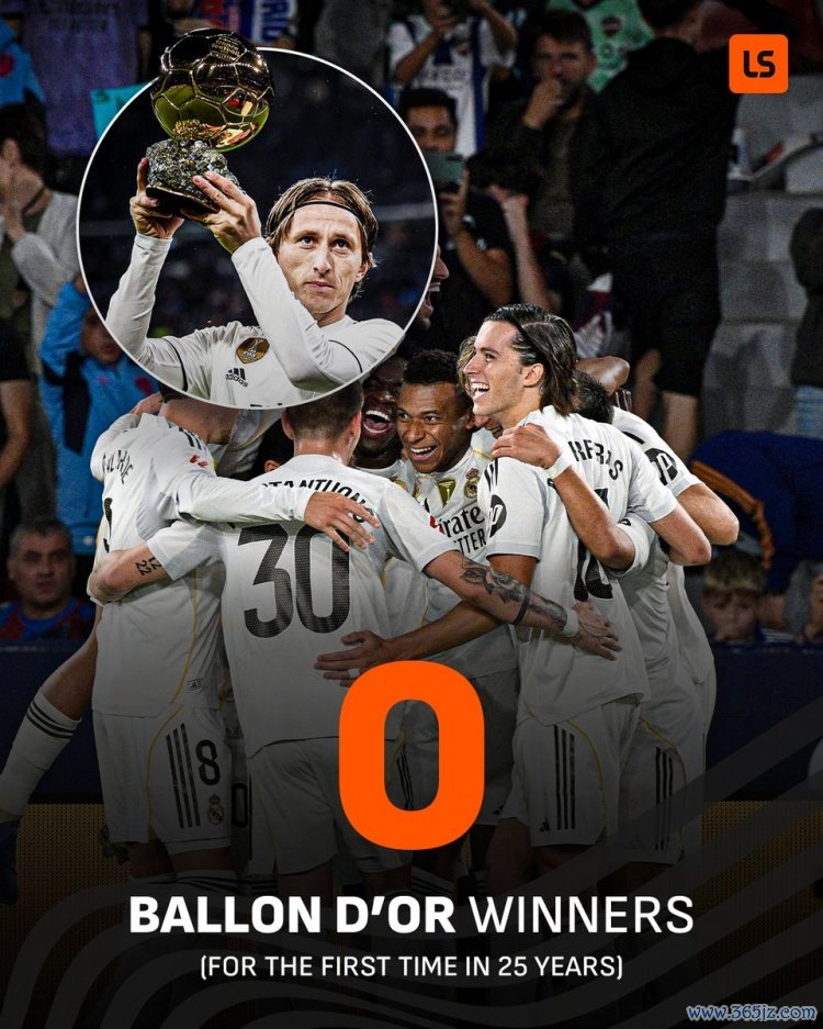 10月3日讯 数据显示,自2000年以来, 超级体育风云皇马队内首次没有金球奖先生。