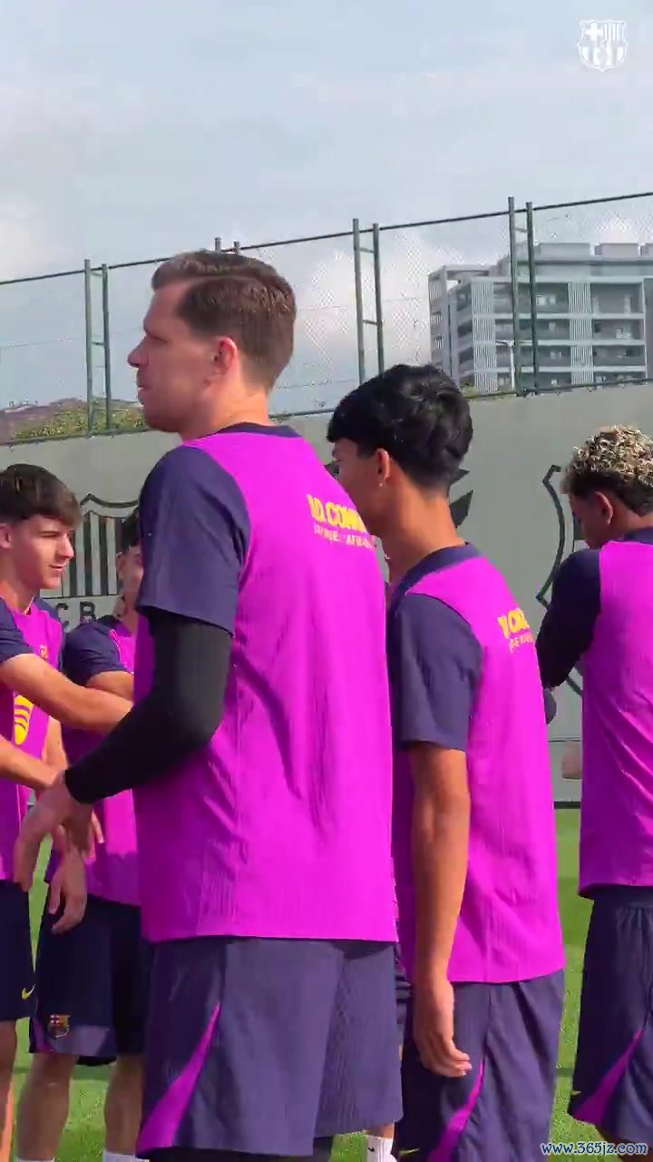 10月16日讯 巴萨球员在练习 时列队欢迎德容和费尔明,并对他们致以拍头礼进行祝贺。