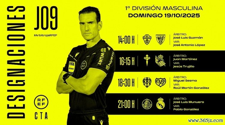 10月19日讯 西班牙足协官方公布了西甲第9轮部分赛事 场次的裁判 安排,穆努埃拉执法皇马客战赫塔费。
