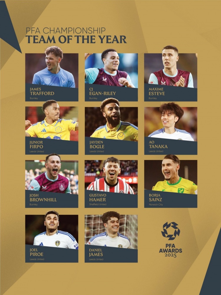 8月20日讯 昨日进行了PFA年度颁奖典礼,典礼现场公布了由球员票选的2024/25赛季英冠职业联赛 最佳十一人阵,现效力于利兹联的日本中场球员田中碧在列。